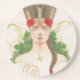 When it is time to break out decorations for the harvest season this coaster is a must have. It features a portrait of the Goddess wearing a seasonal headdress decorated with wheat, corn, and poppies. The background has grape leaves, corn leaves, and more wheat. Other symbols for this agrarian celebration are seeds arranged in a spiral around her breast, and a Brighid's cross at her throat. Her eyes are the green colour of healthy growth and her braid the colour of rich fertile soil. This is a great representation of the Goddess for your altar during the harvest season.