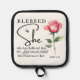 Luke 1:45 Blessed is She Rose Flower Pot Holder