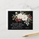 Inspirational quote scripture Christmas postcard depicts an elegant floral watercolor with white roses, red berries, gold flowers and greenery on a black background. It features Bible Verse Luke 2:14, Song of the Angels: "Glory to God in the highest and on earth, Peace, Goodwill towards men.”
