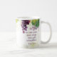 Coffee mug with inspirational quote scripture depicts a beautiful nature watercolor with purple grapes hanging from a vine. It features a portion of the parable Jesus taught from Bible Verse Luke 5:37, "No one puts new wine into old wineskins."