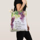 Tote bag with inspirational quote scripture depicts a beautiful nature watercolor with purple grapes hanging from a vine. It features a portion of the parable Jesus taught from Bible Verse Luke 5:37, "No one puts new wine into old wineskins."