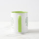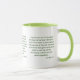 This mug features the Luke 6:45 KJV bible scripture in a unique print with light green letters black outline and bible citation from the King James version. The rim & handle are glazed in matching colours available in 11-ounce or 15-ounce sizes microwave and dishwasher safe ceramic construction.