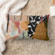 Elevate your home décor with this stunning lumbar pillow, featuring a unique digital abstract collage design that beautifully mimics the look of torn wallpaper. This eye-catching piece showcases a harmonious blend of rich browns, warm golds, soft peaches, and sleek blacks, creating a captivating visual that adds depth and texture to any space.