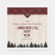 ANY AGE. Unique card design featuring red buffalo plaid, forest silhouette, a red buffalo plaid heart for monogram, hatchets, gorgeous LUMBERJACK & JILL PARTY script with red plaid effect, on a washed wood background. Use Customise tool to add your info. For matching items please, visit my Lumberjack and Jill Party.