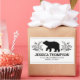 A rectangle wilderness bear return address label. It features a woodland bear and forest foliage.