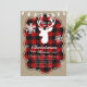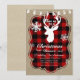 Christmas Dinner Party Invitation with deer, lumberjack theme and red buffalo plaid background. Perfect if you are planning for a rustic Christmas party.