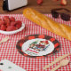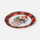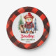 Lumberjack party tableware teddy bear in lumberjack clothes and boots fir tree and log, red green, black, denim colours, buffalo plaid personalised Paper Plates.
