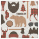 Cute lumberjack pattern fabric: beards, trees and animals and axes! Buffalo plaid elements in brown and red. Cute gift for your the lumberjack in your life.