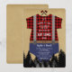 Cute design for a Boy Baby Party card: gorgeous typography on a red buffalo plaid baby suit with denim shorts, trees on a rustic old paper background. Use Customise tool to add your info. For more, visit please, my Plaid/Lumberjack Party Collection.