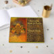 The digital design atop this faux leather look background seems to not only lighten spirits but every gazing eye.