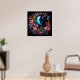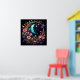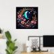 "Luminescent Floral Crescent" is a vibrant and enchanting poster. A beautifully detailed, glowing blue crescent moon and a starry sky are framed by an ornate golden border. The design is filled with a lively burst of pink, blue, and purple flowers, creating a mystical and whimsical feel that adds a unique touch to any decor.