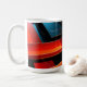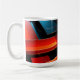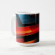 This luminous abstract ribbon design transforms a simple mug into a piece of modern art. Diagonal waves of fiery red, glowing orange and deep blue glide across a dark background, like molten ribbons of color slicing through the night. The composition feels both sleek and dramatic, perfect for a contemporary lifestyle.