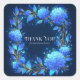 Add a touch of celestial magic to your correspondence with this elegant floral thank you sticker. The design features a deep, starry navy blue background, creating a stunning canvas for a beautiful, square floral wreath. Luminous, glowing blue hydrangeas, appearing lit from within, are artfully woven with delicate, fine-lined gold leaves, golden stems, and deep blue foliage. The entire scene is dusted with a magical spray of blue and gold glitter, like distant stars, adding to the enchanted, celestial feel. These stickers are perfect for businesses that want to add a touch of sophisticated magic, such as astrologers or spiritual guides to seal readings, boutique candle makers for luxury packaging, high-end florists for bouquet wrapping, or event planners for celestial-themed weddings. This versatile design can also be used to beautifully seal envelopes for galas or milestone birthdays, or as a sophisticated accent on party favours and gift wrapping.