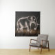 Luminous Elephant Silhouette, a photograph of a silhouette of a luminous elephant. The elephant's body is illuminated, with the light highlighting the majestic height of its trunk and the arch of its back. The elephant is standing in a field of tall grasses, which are also illuminated. The background is a solid black. The lighting creates a sense of grandeur.