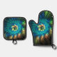Luminous Fantasy Flower, Colourful Abstract Fracta Oven Mitt & Pot Holder Set