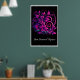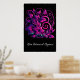 This striking poster features an exquisite botanical design set against a deep black background. Vibrant fuchsia and purple leaves with intricate vein details create a lush composition, complemented by elegant swirling tendrils that dance throughout the arrangement. The neon pink and electric blue gradient gives the foliage an ethereal, almost bioluminescent quality that seems to glow in the darkness. Delicate spirals and small berry-like accents add movement and depth to the design. At the bottom, elegant cursive script reads "Neon Botanical Elegance," perfectly capturing the modern yet sophisticated aesthetic of this digital artwork that blends natural forms with contemporary neon styling.