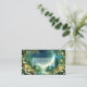 Define your brand with celestial magic and the ethereal beauty of a hidden night garden using this captivating business card. The design centers on a spectacular nocturnal landscape, dominated by a massive, intensely glowing crescent moon that illuminates the sky and the forest below with a dramatic arc of light. The foreground features a serene lake reflecting the cosmic glow, framed by dark pine forests and misty valleys. The entire scene is lavishly bordered by an abundant foreground of lush white and pale yellow roses and wildflowers, creating a luminous, romantic archway. Subtle fairy lights and sparkling stardust fill the scene, enhancing the enchanting, high-end atmosphere and making your card truly unforgettable. This business card is ideally suited for a luxury event planner specializing in fairy-tale or twilight-themed galas, a boutique hotelier wanting to convey a magical, serene setting, or a fantasy novelist or game developer seeking distinctive, narrative-driven branding. It would also perfectly suit a fine art print seller focused on mystical or romantic works, or an exclusive floral designer emphasizing luminous arrangements.