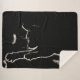 The luminous kitten extends its paws to the falling feathers. This is a perfect opportunity for him to play. The black background and white outline of the cat looks beautiful on the blanket.