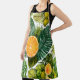 The picture unfolds a bright melody of lush green monster and palm leaves, combining with juicy orange slices and exotic fruits in bright yellow and orange. The lively contrast on a bright background gives a cheerful tropical warmth that radiates energy and a touch of paradise.