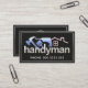 A stylish faux silver frame envelopes a dark grey cover that has a silver handyman tools design. Near the base of the card lies your phone contact details.