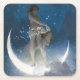 Luna Goddess at Night Scattering Stars Square Paper Coaster