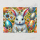 Here is a cute Easter Greeting postcard featuring a cute bunny, Easter eggs, and flowers. It was created using a computer-generated AI program called Bing and my imagination. It is a reasonably priced card for greeting anyone, particularly children, on Easter Day.
