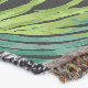 A quality printed throw has its advantages. This is a much finer weave throw than its loopier cousins, and though lighter, it is worth the investment for custom room accessorizing. The back is much prettier than the typical brown, and the fringe on the long sides very vivid, the selvage nicely done. Before photographing, I washed the throw in cold water, delicate, with a thicker woven throw the same size. On tumble dry low, this throw was dry in half the time as the other. This is a very practical quality if you use throws for furniture covers or to wrap up in frequently. The sleekness of the fabric makes it a great layer for accenting or protecting without the feeling of sitting on too much stuff. Perfect for napping or when you feel a light chill coming on. The color printing is beautiful and on this fabric, matched the design and color of my Photoshop image. This is an advantage for blending room fabrics and colors. The fringe on the short sides prints the colors from the design image and therefore varies from the side fringe. I streaked a white fractal line through the plaid pattern to give the illusion of weaving. This printed as crisp as an illusory thread, and put some white in the short side fringe, showing another advantage of print vs loomed- for artistic purposes, line lines, detail, and color integrity can be planned and preserved. My loomed throws have color limitations and more of a needlepoint texture. Print throws reproduce an exact image. The throw felt a little stiff straight out of the package, but this went away in the first delicate wash. Of course I searched the wash water for ink or bleeding and there was none.