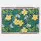Luna Hibiscus Garden Hawaiian - Yellow and Navy Throw Blanket