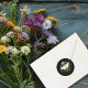 A vibrant green luna moth is surrounded by moon phases and lush green leaves against a deep black background.