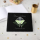 A vibrant green luna moth is surrounded by moon phases and lush green leaves against a deep black background.