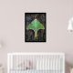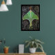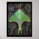 This poster features the incredible luna moth, a lime-green, Nearctic Saturniid moth in the subfamily Saturniinae. With a wingspan of up to four and a half inches, this lovely creature ranks as one of the largest moths in North America. This adult moth has just emerged from the cocoon and is waiting on the bark of a tree trunk to dry and harden. The adults do not eat or have mouths. They live for only one week and emerge as adults only to mate. With lime green colour and distinctive eyespots this is a very mysterious, magical looking being.