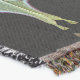 A quality printed throw has its advantages. This is a much finer weave throw than its loopier cousins, and though lighter, it is worth the investment for custom room accessorizing. The back is much prettier than the typical brown, and the fringe on the long sides very vivid, the selvage nicely done. Before photographing, I washed the throw in cold water, delicate, with a thicker woven throw the same size. On tumble dry low, this throw was dry in half the time as the other. This is a very practical quality if you use throws for furniture covers or to wrap up in frequently. The sleekness of the fabric makes it a great layer for accenting or protecting without the feeling of sitting on too much stuff. Perfect for napping or when you feel a light chill coming on. The color printing is beautiful and on this fabric, matched the design and color of my Photoshop image. This is an advantage for blending room fabrics and colors. The fringe on the short sides prints the colors from the design image and therefore varies from the side fringe. I streaked a white fractal line through the plaid pattern to give the illusion of weaving. This printed as crisp as an illusory thread, and put some white in the short side fringe, showing another advantage of print vs loomed- for artistic purposes, line lines, detail, and color integrity can be planned and preserved. My loomed throws have color limitations and more of a needlepoint texture. Print throws reproduce an exact image. The throw felt a little stiff straight out of the package, but this went away in the first delicate wash. Of course I searched the wash water for ink or bleeding and there was none.