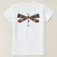 Hand-sketched dragonfly - a symbol of transformation - in beautiful stained glass hues. The artwork adorns the front and back of the t-shirt.