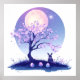 A tranquil midnight wonder with a white rabbit gazing at a glowing full moon in a serene night scene.