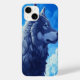 Mystical Wolf in a Serene Anime-Style Blue Fantasy Scene iPhone Case