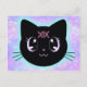 The Lunar Kitty design features a kawaii style black cat, adorned with the Wiccan triple moon design.