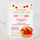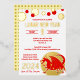Personalise these real gold foil red dragon Lunar New Year invitations with your party details. Easy to use templates make customising these Chinese New Year 2024 invitations a breeze so you can set the tone for your fabulous celebration. Real foil accents add the glamour while a simple modern layout keeps the design fresh and clean. A simple red dragon illustration in the lower right hand corner is set against a solid circle of real gold foil with a series of real gold foil and bright red dots scattered across the top completes the theme. The bright red lettering and gold foil accents against the clean white background are perfect for your Happy Lunar New Year dinner invitations. Each invitation reverses to a soft vanilla cream colour with gold tone repeating squares. Create your own personalised Chinese New Year party invitations for The Year Of The Dragon and celebrate with friends and family in style.