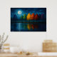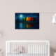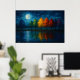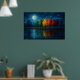 A radiant moon casts its glow over a tranquil body of water, illuminating a row of trees whose foliage transitions through a full chromatic spectrum—from verdant green to golden yellow, fiery orange, deep crimson, and violet dusk. The night sky, rich with stars and swirling clouds, envelops the scene in serenity, while the water below mirrors the vibrant gradient with gentle distortion. Lunar Spectrum invites viewers into a dreamlike moment where colour, light, and reflection converge. It evokes themes of emotional transformation, seasonal passage, and the quiet magic of moonlit solitude.