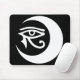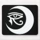 The Eye of Horus nestled within the horns of a waxing crescent moon.