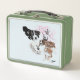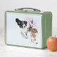 This is a standard metal lunchbox that appears to work just fine. We designed this box ourselves with an uploaded photo and custom text on the front and back. It looks absolutely beautiful except the front of the lunchbox is not centered like it shows in the photo. The print borders don't align with the inset flat part of the box where the preview photo online showed it perfectly centered in there. The back looks nice and centered though.