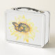 This is a standard metal lunchbox that appears to work just fine. We designed this box ourselves with an uploaded photo and custom text on the front and back. It looks absolutely beautiful except the front of the lunchbox is not centered like it shows in the photo. The print borders don't align with the inset flat part of the box where the preview photo online showed it perfectly centered in there. The back looks nice and centered though.