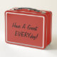 This is a standard metal lunchbox that appears to work just fine. We designed this box ourselves with an uploaded photo and custom text on the front and back. It looks absolutely beautiful except the front of the lunchbox is not centered like it shows in the photo. The print borders don't align with the inset flat part of the box where the preview photo online showed it perfectly centered in there. The back looks nice and centered though.