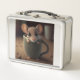 This is a standard metal lunchbox that appears to work just fine. We designed this box ourselves with an uploaded photo and custom text on the front and back. It looks absolutely beautiful except the front of the lunchbox is not centered like it shows in the photo. The print borders don't align with the inset flat part of the box where the preview photo online showed it perfectly centered in there. The back looks nice and centered though.