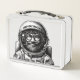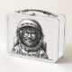 Extra Large pen and ink style portrait of Astronaut & Space Trucker "Jamers" on unpainted metal lunchbox. Great Gift for kids of all ages and fans of 1970s adult underground style comics. For the record, that is a thermometer in Jamer's mouth.