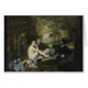 Luncheon on the Grass (Le Déjeuner sur l'Herbe) by Edouard Manet, oil on canvas 1863, is a landscape painting of four persons having an afternoon picnic in a forest glade surrounded by dark trees and foliage. Art historians often cite the painting as the landmark beginning of modern art for its flattened forms, painterly technique, and "shocking" modern subject matter, and the picture elicited great controversy on its first showing. For the female subjects, Manet employed his famous model Victorine Meurent and wife Suzanne, vividly contrasting them against their male companions. The composition was transposed from a Renaissance engraving by Marcantonio Raimondi designed by Raphael, further stoking the notoriety of the painting. The stark contrasts of light and dark, sketchy painting technique, and matter of fact realism of the flattened composition mark Luncheon on the Grass as one of the most important paintings of the 19th century, influencing many subsequent generations of modern artists.