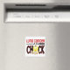 My work uses Velcro spots and laminated paper for the "clean/dirty" sign and has to replace it every few weeks (people resist using it as the Velcro dots peal off). I saw these and instantly purchased them for work AND our home dish drawers.