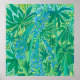 Poster featuring whimsical floral painting, beautiful blooming lupine flowers surrounded by green leaves.