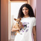 T shirt featuring my illustrations of a wolf, purple butterfly and purple ribbons, all of which are symbols of Lupus.