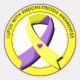 Lupus with Endometriosis Awareness purple and yellow awareness ribbon with a small purple heart and purple, yellow, and white borders. Text is customisable. The Purple and yellow ribbon stands for Autoimmune Hepatitis Awareness, Chemical Injury Awareness, and Lupus with Endometriosis Awareness.