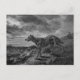 A rather forlorn looking lurcher dog stands on a hill overlooking a hilly landscape where several white rabbits hop about. This vintage dog illustration by John Scott is perfect for any dog fancier.